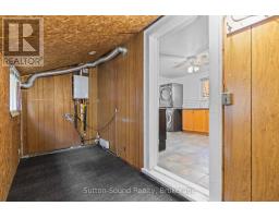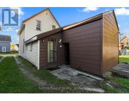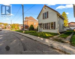 Welcome to this charming 2-storey home located on Owen Sound's desirable west side, just a short stroll to the harbour and the highly anticipated Harbour West development. Situated in a growing area full of potential, this property is an excellent opportunity for both homeowners and investors.Offering approximately 1,100 sq. ft. of living space, the home features 2 bedrooms and 1.5 bathrooms, with flexibility for a potential third bedroom or a convenient main floor den. The bright main level includes a walkout through sliding doors to a partially fenced backyard-perfect for relaxing or hosting family and friends. Set on a 51' x 97' lot, the property includes a shared mutual driveway with two parking spaces at the rear, along with the option to create additional parking at the front. Zoned MC, this property opens the door to a variety of investment or redevelopment possibilities. Additional features include an attached unfinished addition offering great storage or workshop potential, two storage sheds, forced air natural gas heating, a newer roof (2021), and all brand new appliances (2025). Upstairs, both bedrooms have been updated with new insulation, drywall, and fresh paint. Ideal for first-time buyers or those looking to enter the market and build equity, this home is perfectly located near parks, trails, shopping, the harbour, and all the amenities Owen Sound has to offer. Whether you're searching for a place to call home, an income property, or a future investment, this property is full of potential and ready to be explored. Note: Some images have been virtually staged. (id:47611)