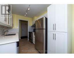 $595 MonthlyFrom the moment you step inside, it just feels right - bright, comfortable, and effortlessly inviting. Welcome to condo living at its finest in Owen Sound. This top-floor corner unit is filled with natural light and offers sweeping views of the city's edge. The open-concept living and dining area is the perfect place to start your day, with morning sun pouring in and a quiet moment to enjoy your coffee. Fully updated from top to bottom, the home features rich engineered hardwood flooring, quartz countertops, custom cabinetry, stainless steel appliances, and fresh paint throughout. The spa-inspired bathroom offers a sleek step-in shower and modern finishes-your own private retreat. The spacious primary bedroom includes double closets, while the second bedroom is ideal for guests, a home office, or a cozy den. With in-unit laundry and thoughtful updates throughout, everything has been done for you. Located in the desirable Heritage Tower, you're just moments from shopping, parks, and everyday amenities, all while enjoying the ease of low-maintenance living. Simply move in, settle in, and enjoy. (id:47611)